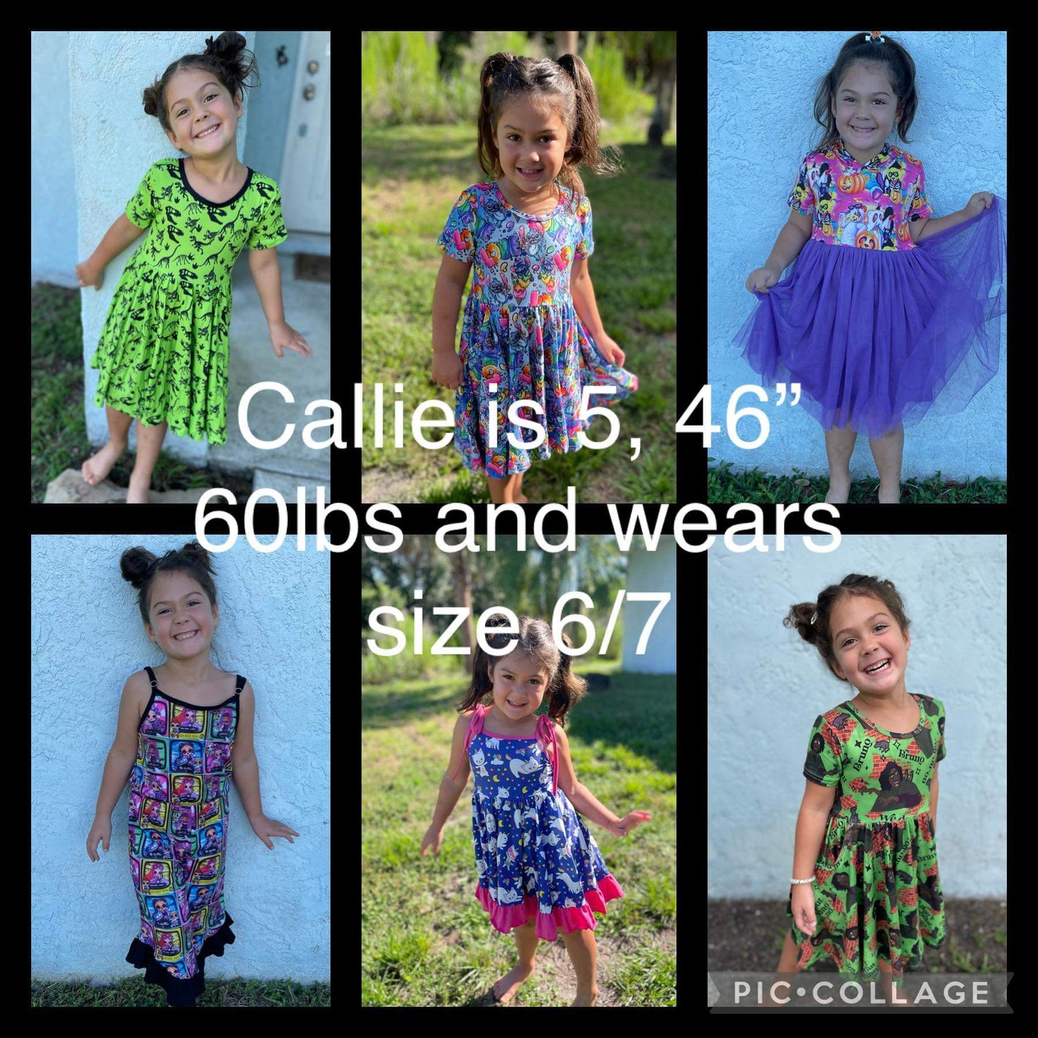 Our beautiful butterfly family sporting the many styles and prints Butterfly Wings & Princess Things has to offer. Here is a perfect way to get an idea of how our clothing fits! Clothing fits true to size but for longer wear size up in dresses and shirts!