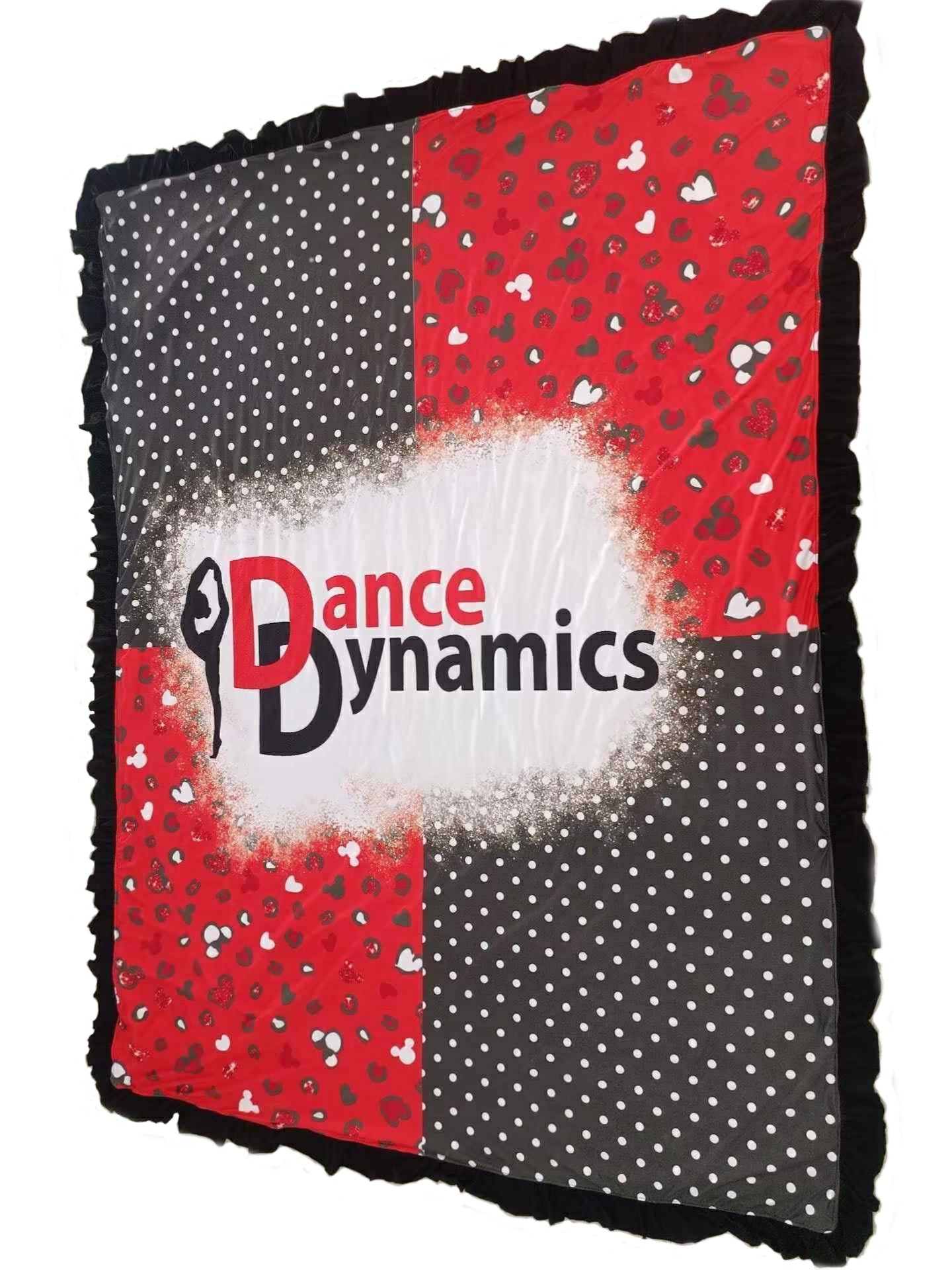 Material is a soft printed milk silk backed with smooth black minky. Bordered with a black cotton ruffle.